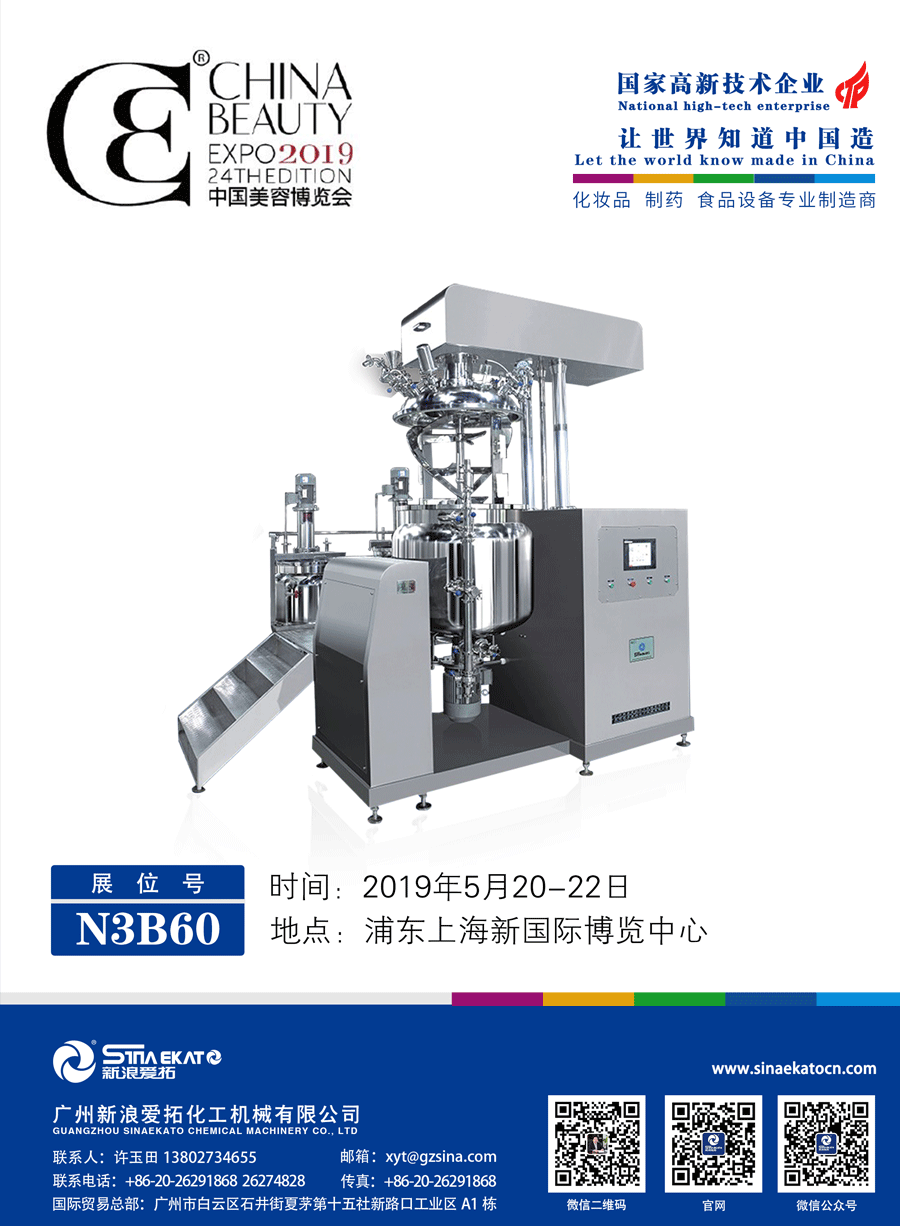 Sina Alto will fight for the 20th world China Beauty Expo again. The exhibition is located at n3b60. You are welcome to come to inquire about the mechanical equipment of the daily chemical production line.