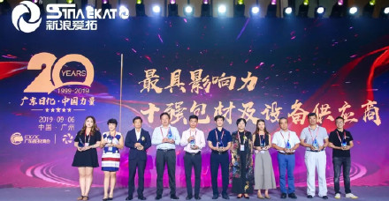 Congratulations on Sina Alto winning the top 10 packaging materials and equipment suppliers in 2019