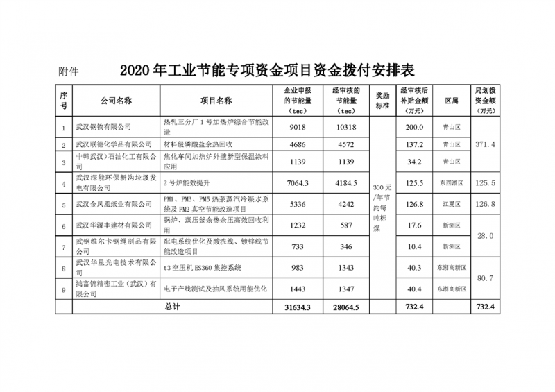 2020年工業節能專項資金撥付公告