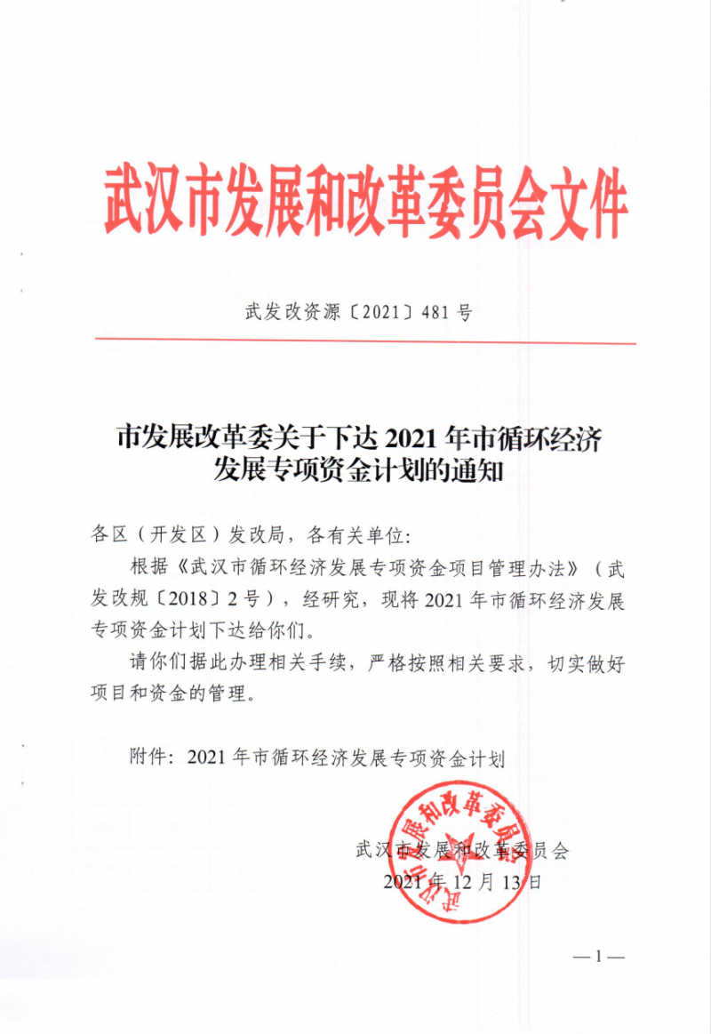 關(guān)于下達2021年市循環(huán)經(jīng)濟發(fā)展專項資金計劃的通知